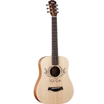 Perfect for aspiring guitar players and budding songwriters, the Taylor Swift Baby Taylor (TSBT) was inspired by her memories of writing songs on her own Baby Taylor. Featuring a solid spruce top, the TSBT offers a bold, full sound from a comfortable guitar that's accommodating to young learners: the neck is made with a slim profile that's ideal for smaller hands, and the narrow body fits easily in the player's arms. Swift collaborated with our designers to create the custom rosette, which features her signature below an artful floral print. This acoustic-only model includes a gig bag for protection and transportation.