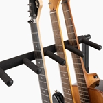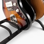 There are many reasons to have five guitars, and they are all excellent! The new GS7561 is a cost effective way to display a combination of electric and acoustic instruments on stage, in the studio, or at home. Guitars line up in single-file leaning against a padded yoke and cradled by a padded base. Access is unobstructed and instantaneous. The wide rectangular base is stable no matter how many slots are full. And, like you’d expect from On-Stage Stands, portability is built into the design. The backrest folds downwards, making a lightweight, low profile bundle for easy transport.
