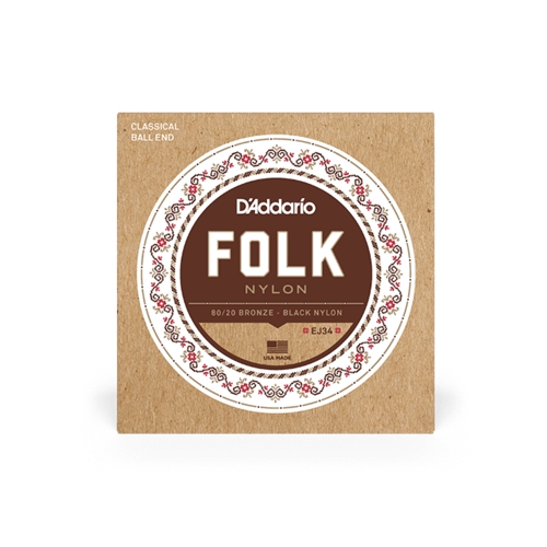 D'Addario EJ34 Folk Nylon Guitar Strings, Ball End, 80/20 Bronze/Black Nylon Trebles