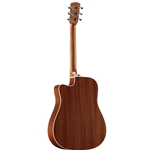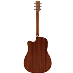 The premium North American Sitka top is hand selected and paired with high quality laminated African Mahogany backs and sides. The response is quick and its voice open and dynamic for a solid top. This cutaway model is fitted with wonderful LR Baggs StagePro EQ and Element Pick Up.