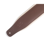 - Levy's 3" brown top grain leather guitar strap with foam padding wrapped in cream garment leather.
