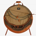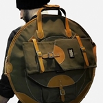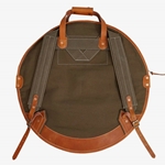 The Tackle Waxed Canvas Backpack Cymbal Case is made of 15-ounce forest green cotton canvas and saddle tan premium leather. It features a heavy-duty #10 brass zipper and includes 3 canvas cymbal dividers in the main compartment. It’s front pocket houses hi-hats hats up to 15" in the 22" models and hi-hats up to 16" in the 24" models. Both the 22" and 24" backpack feature an additional zippered pocket in the front for your cell phone, wallet and drum key.