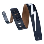 Levy's DM2-BLK 2 1/2" Wide Lightning Bolt Leather Guitar Strap, Black, Larsen Leather Deluxe Series