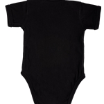 - Black baby bodysuit featuring playful “Rockin’ Around” dinosaur graphics