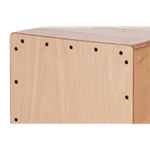 Pearl's Elite Series Dub Bass Cajon is constructed using blended Meranti and White Teak for the body with a blended Maple faceplate. The Dub Bass Cajon is unique with its sound ports appearing on the front. The internal sound chamber channels the deep bass out of the front-facing ports. The 50/50 faceplate is half screwed on and half glued, producing an amazing resonance. Most cajon faceplates are either 100% glued on or 100% screwed on, but we discovered blending the two methods produced the best acoustics with this cajon. 3 sets of fixed snare wires positioned at the top of the cajon add to the crisp attack.