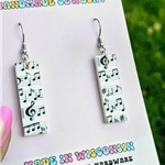 Assorted White and Black Music Notes, Clefs and Bars on a Sleek Bar Style Earring.