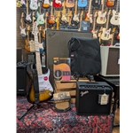 This electric guitar bundle is the complete package! It includes an electric guitar, gig bag, guitar stand, a variety pack of picks, guitar strap, an amp, and an instruction book. Come pick up your order at your convenience! Or, come in, and customize the pack to fit the musician in your life!