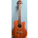 The original, and still a best-seller. You'll find that this mighty mite has real usefulness in acoustic playing situations, but plug it in and the REAL fun begins. Available fretted or fretless, the 23 will have your acoustic amp or bass amp rumbling with big, fundamental bass tone. The sound of the M-Bass through an amp is uncannily like that of an upright string bass. You get big bass magic from an instrument the size of a "baby" guitar, shaped by the built-in piezo pickup's EQ module (with tuner!). The M-Bass's naytoh mini-dreadnaught cutaway body has an arched back and comfort-beveled top for playing comfort. Gold Tone's specially developed Aquila high-tension polymer strings are easy on the fingers and really bring out that bottom end.