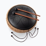 The SD5010 Serenity Series Steel Tongue Drum is a multifaceted percussion instrument used to produce not only long, slow, ethereal tones perfect for meditation, yoga, sound healing, and relaxation, but also rhythms and melodies suitable for many kinds of music. Uniquely pure, clear, and resonant bell-like sounds are easily achieved—even for users with no prior experience playing music. The eight keys of this drum each represent a precision-tuned note in the C-major pentatonic scale. As the keys never go out of tune, it’s easy to maintain, and the available notes are pleasing in any combination. The keys come pre-labeled and adhesive key labels are also included to facilitate teaching and learning. While the drum can be played using just the fingertips, two striking accessories are included: rubber-tipped finger sleeves that help players achieve a soft, calming, droning timbre, and rubber-tipped mallets that impart more definition and volume. Crafted from carbon steel with a powder-coat finish, this instrument delivers strength and durability for long-lasting performance. An outer wrap made of woven cord increases traction to provide a stable hold during performance, practice, and lessons. In addition to a rubber rest that keeps mallets organized and in place, the drum also comes with a carry bag that features a zipper closure, an adjustable shoulder strap, and a top handle for ease of storage and transportation.