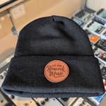 Premium cuffed beanies with a custom leather patch! The patches are made from real 100% full-grain veg tanned leather hides in Portland, OR, and then stitched to the beanie so it never falls offer.