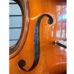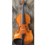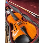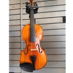 This used violin is in good cosmetic and playing condition. It has been evaluated by our instrument repair department and been polished, restrung with Pro Arte strings, doped the pegs, includes a new bow and had the case vacuumed.